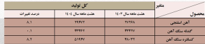 در نهایت مجموع تولید محصولات نهایی فولادی کشور با ۱.۱ درصد افت به ۱۴ میلیون و ۷۴۲ هزار تن رسید. کارشناسان دلایل این روند را رکود بازار داخل و موانع صادراتی ارزیابی میکنند.